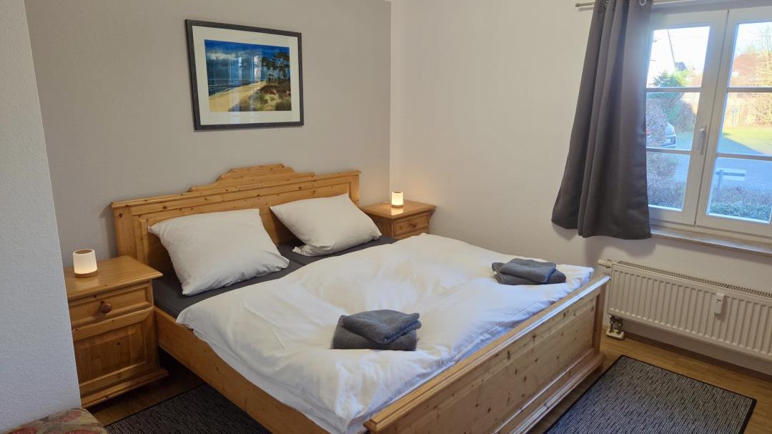Die 60 qm große Ferienwohnung im Bliesenrader Weg befindet sich im Erdgeschoß des Reetdachhauses und verfügt über eine nach Süden ausgerichtete Terrasse, ein Wohnzimmer mit SAT-TV, ein separates Schlafzimmer mit Doppelbett und einer Küche. Das Bad hat eine Wellnessdusche und WC. Die Wohnung ist für maximal 3 Personen eingerichtet und Nichtrauchern vorbehalten. Ein PKW-Stellplatz befindet sich unmittelbar am Haus.